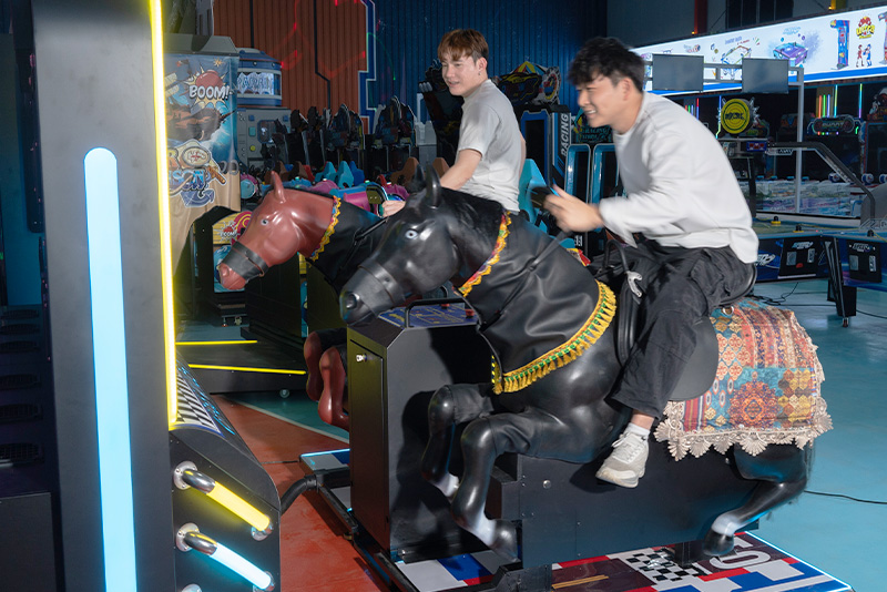 • Simple and Intuitive: Players mount the simulated horses and take on the role of jockeys. The goal is clear—accelerate to the maximum, surpass your opponent, and be the first to cross the finish line!