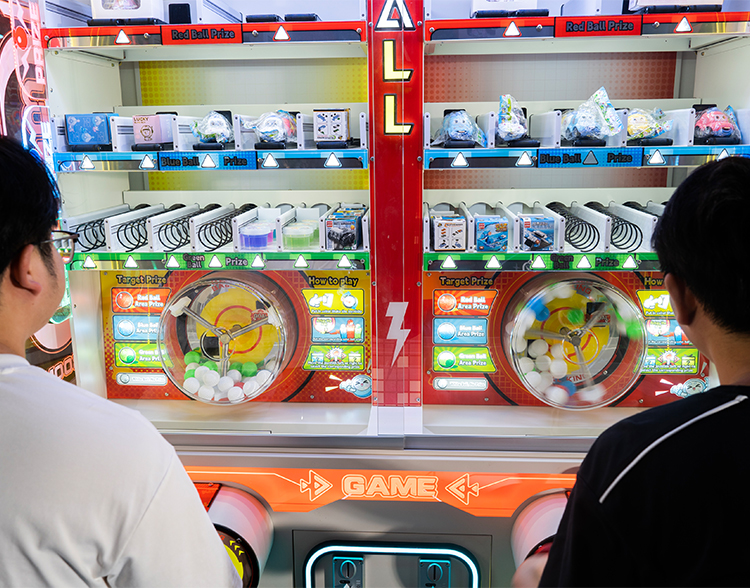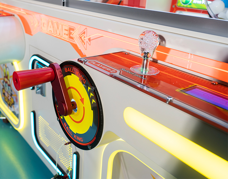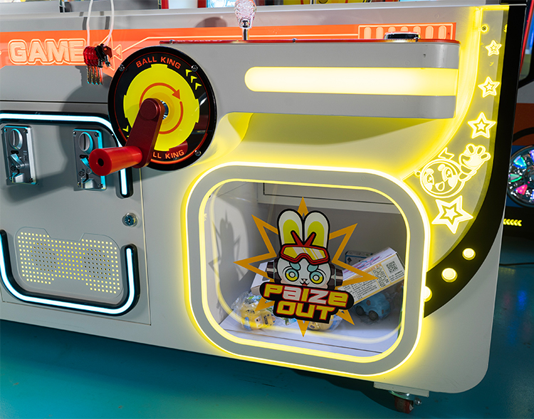 4. Move the joystick left or right to browse and select the prize that matches your ball's color on the display or prize wall.
