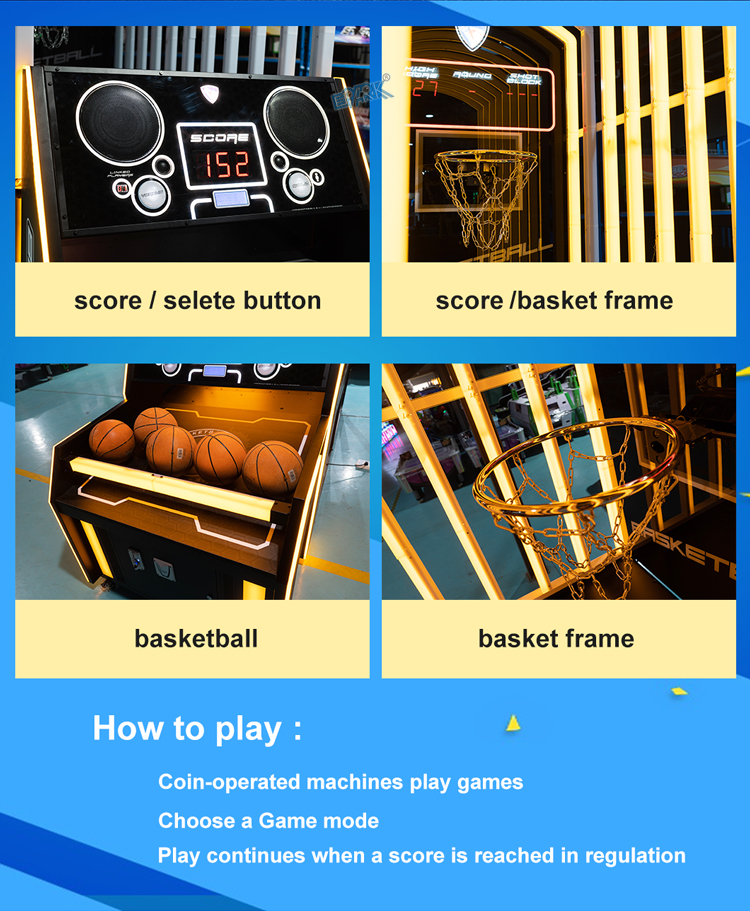 4.The clearance time is adjustable, the score is adjustable, and the game can be played with N basketball machines online.