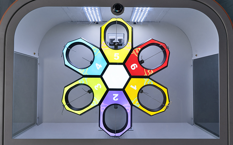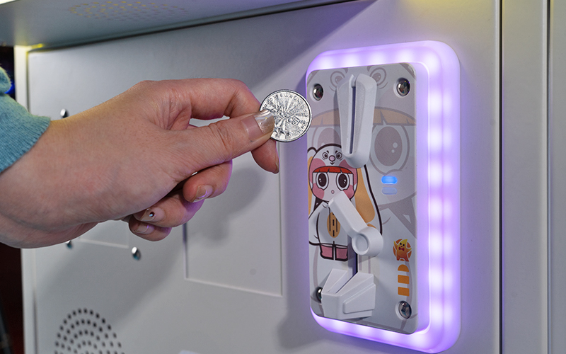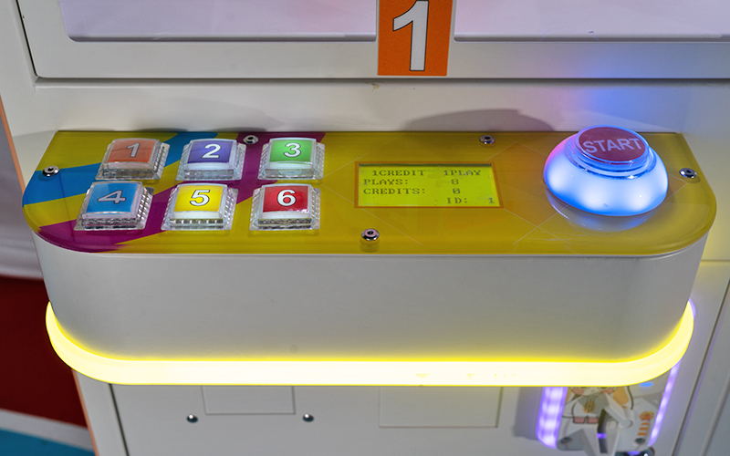 The gameplay of the device is simple and direct. After the player puts in the corresponding tokens, select the button corresponding to the gift cabinet and press the button. The center light of the start button lights up. Press and hold the start button until the scissors move forward to the position where they can cut the rope. Let go of the scissors, and the scissors stop and cut the rope. The select-ed cabinet door opens automatically and you can take out the gift.
