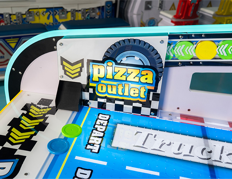 | Insert coins and press the start button to begin. | Slide the puck at the right moment to hit the moving target on the screen. | The more accurate and faster you hit the targets, the higher your score. | Higher scores earn more tickets, and fast hits may trigger bonus rewards. |
